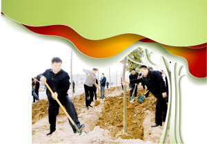 市委書記徐光等市領導在川匯區(qū)義務植樹。記者 王映攝